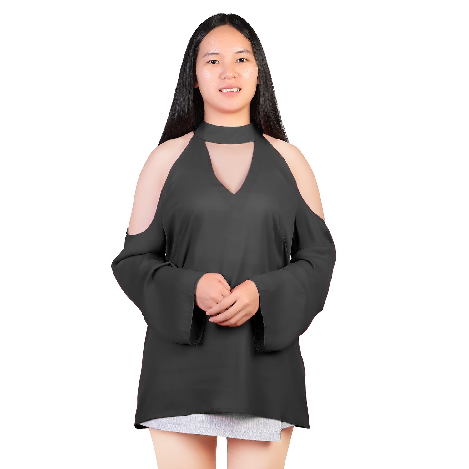 Home > Women\'s Sexy Off The Shoulder Blouses Cold Shoulder Tops V-Neck Long Sleeve T-Shirt Solid Color Summer