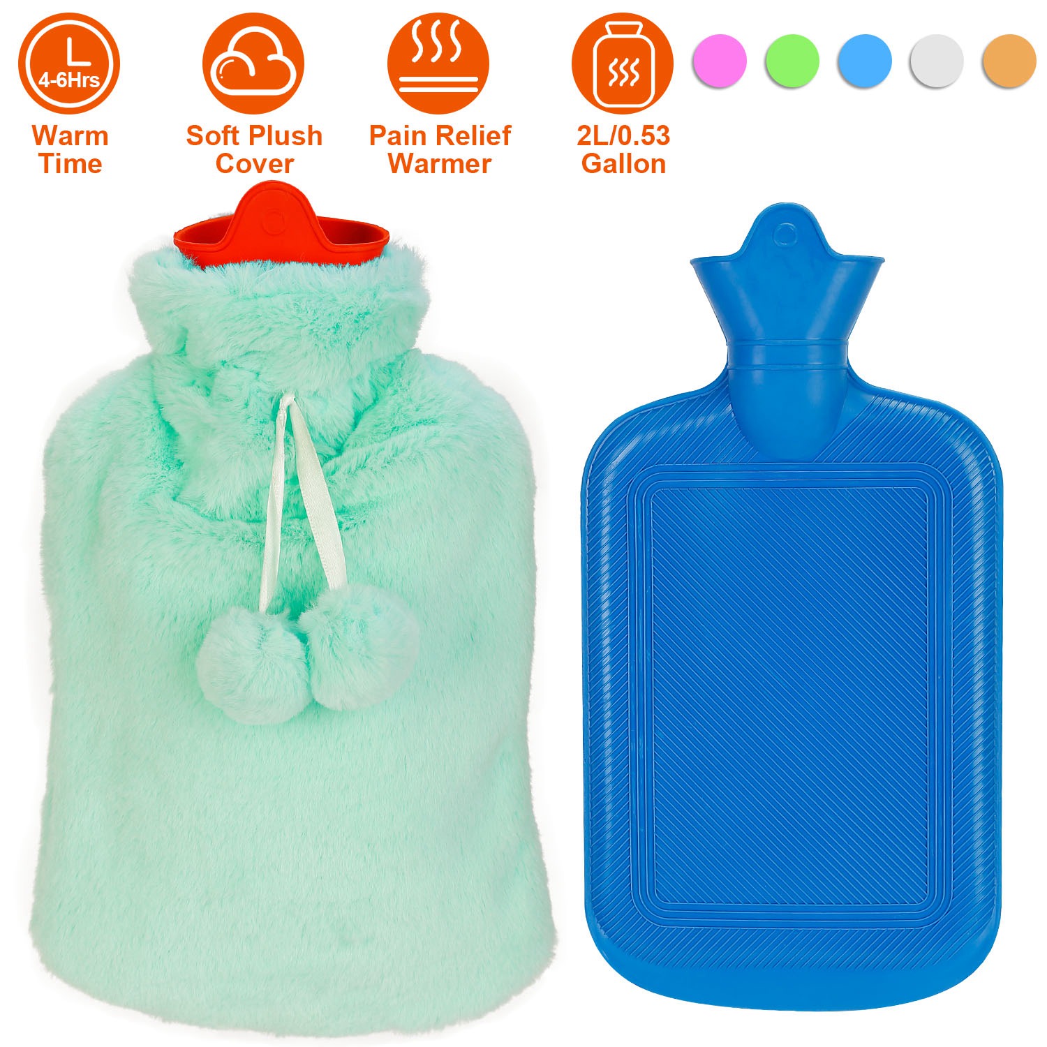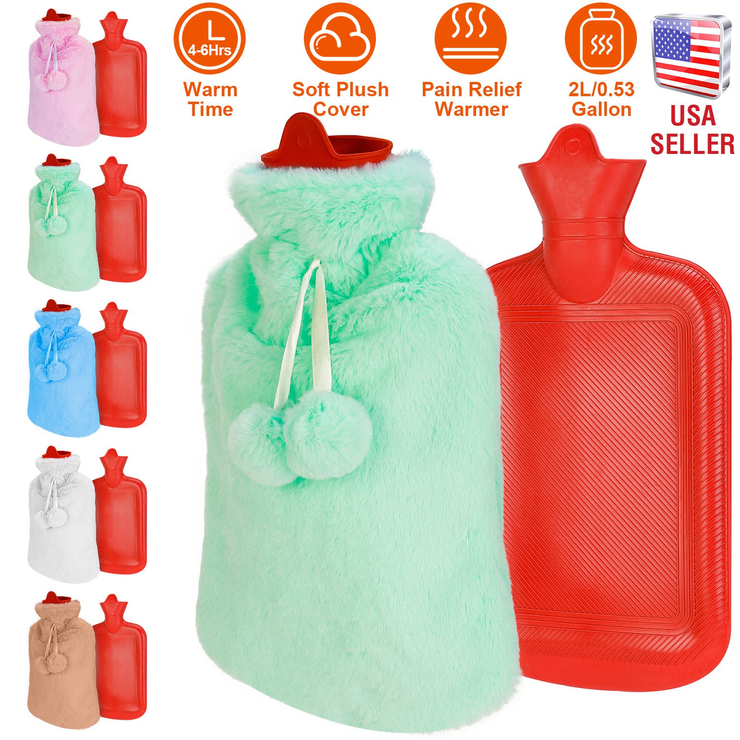 2L Hot Water Bottle w/ Plush Cover Classic Natural Rubber Hot Water Bag Feet Warmer¯r Pain Relief Hot Compress Heat Therapy Warm Neck Shoulders
