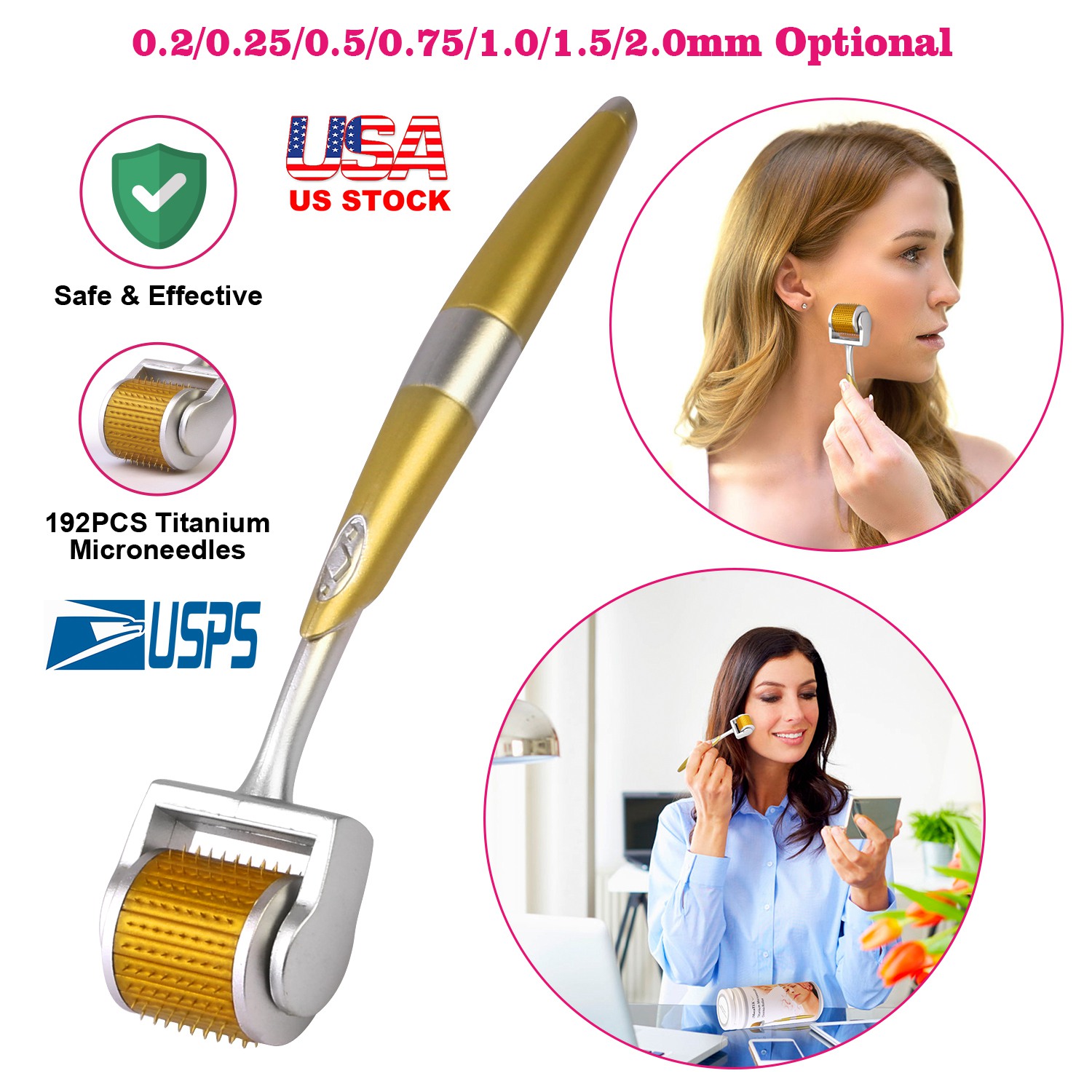 Derma Roller 192Pcs Titanium Microneedles Facial Roller Acne Scars Anti-aging Needling w/ Storage Container