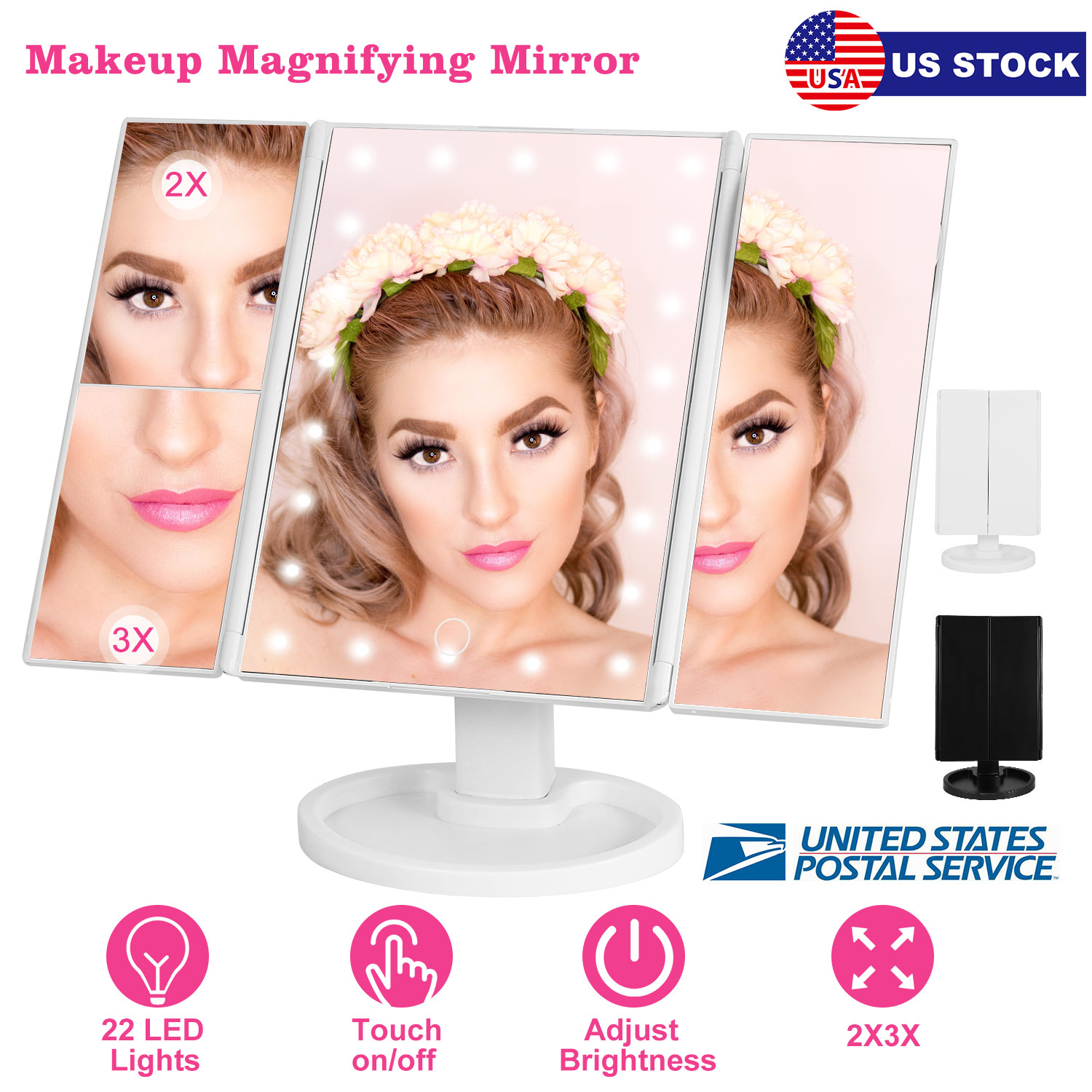 Home > Makeup Mirror with Lights 22 LEDs Vanity with 3X/2X Magnification Touch Screen 180djustable Rotation Portable Trifold Mirror