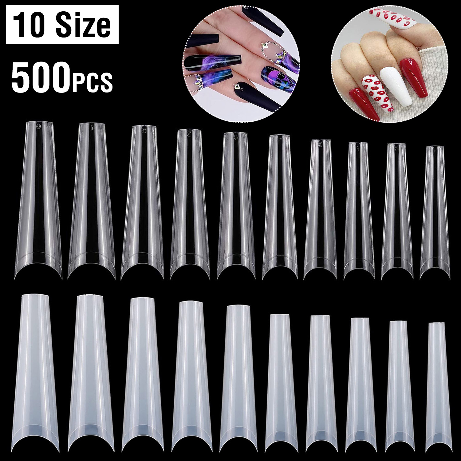 Home > 500Pcs False Nail Tips C Curve Half Cover French Nails Extra Long Fake Finger Nails For Nail Art Salons Home DIY 10 Sizes