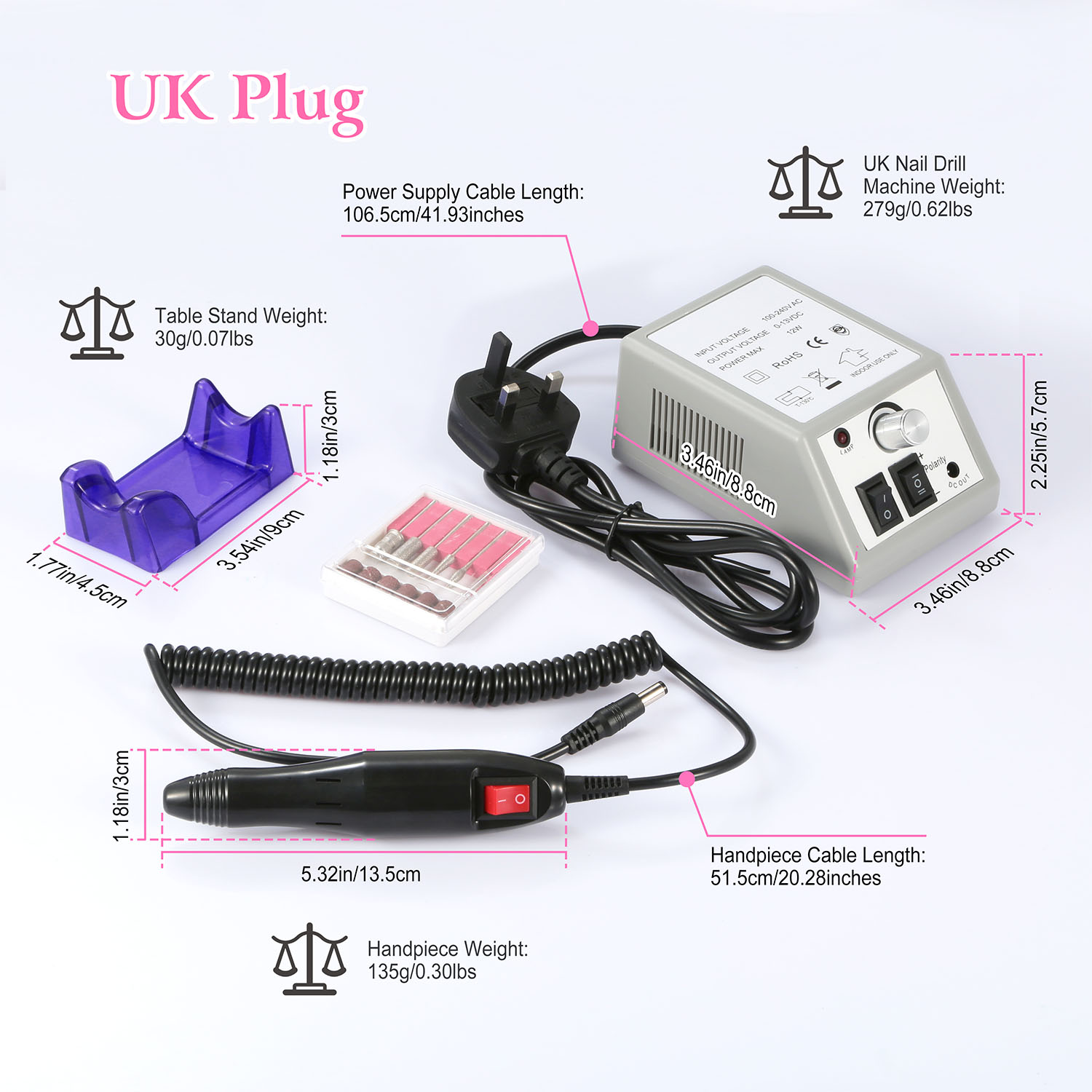 UK Nail Drill Machine Weight: 279g/0.62lbs