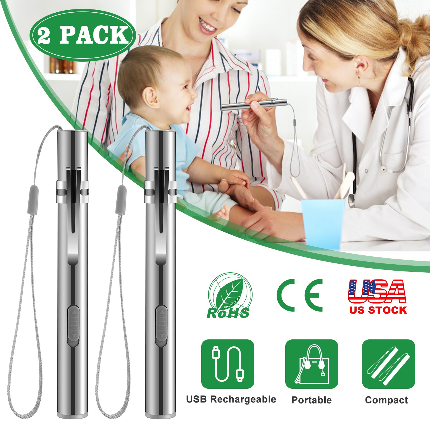 Home > 2Pcs Inspection Penlight for Nurses 250 Lumens Rechargeable Stainless Steel LED Flashlight Repair Water-Resistant for Medical Students Doctors