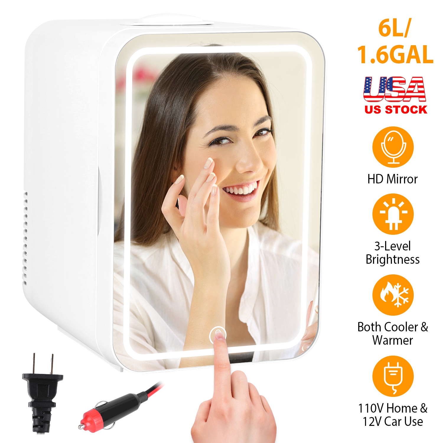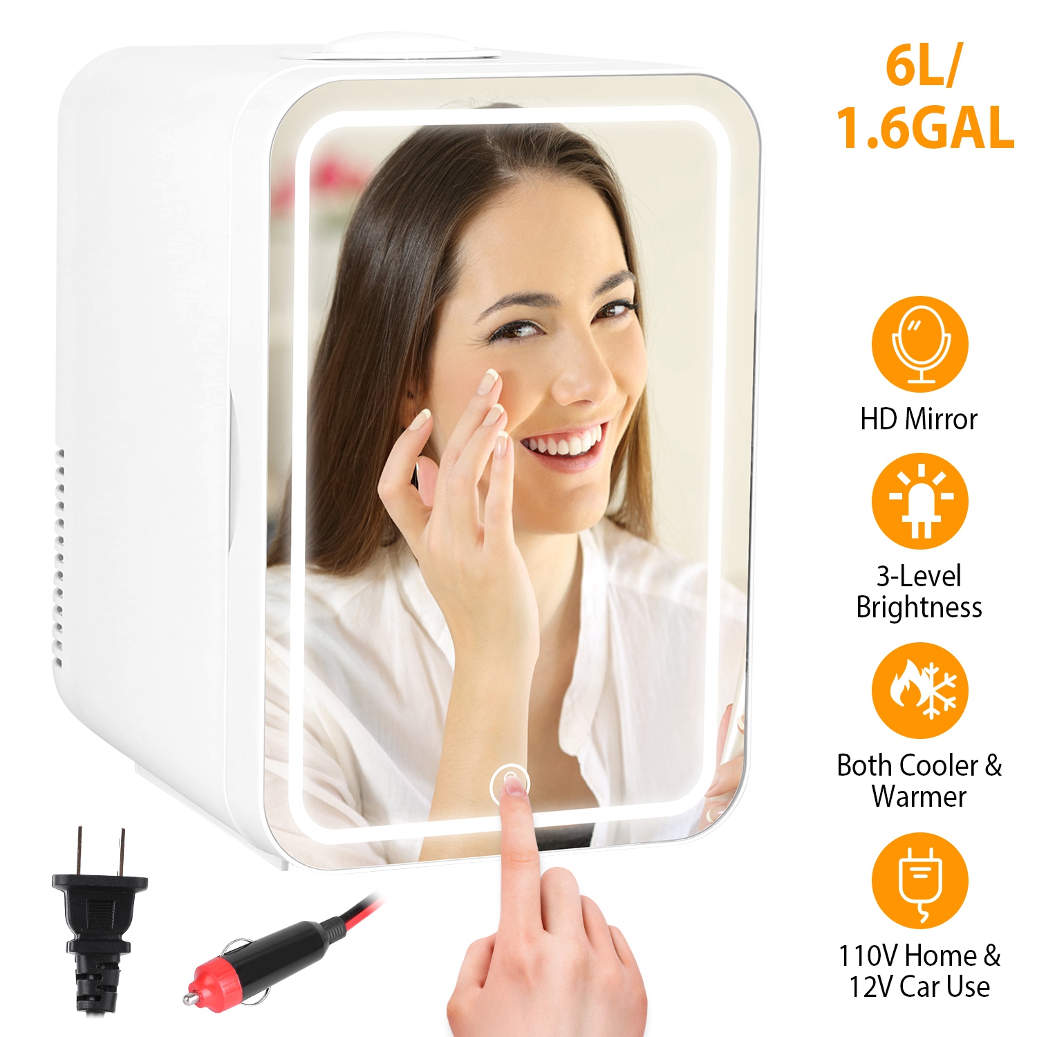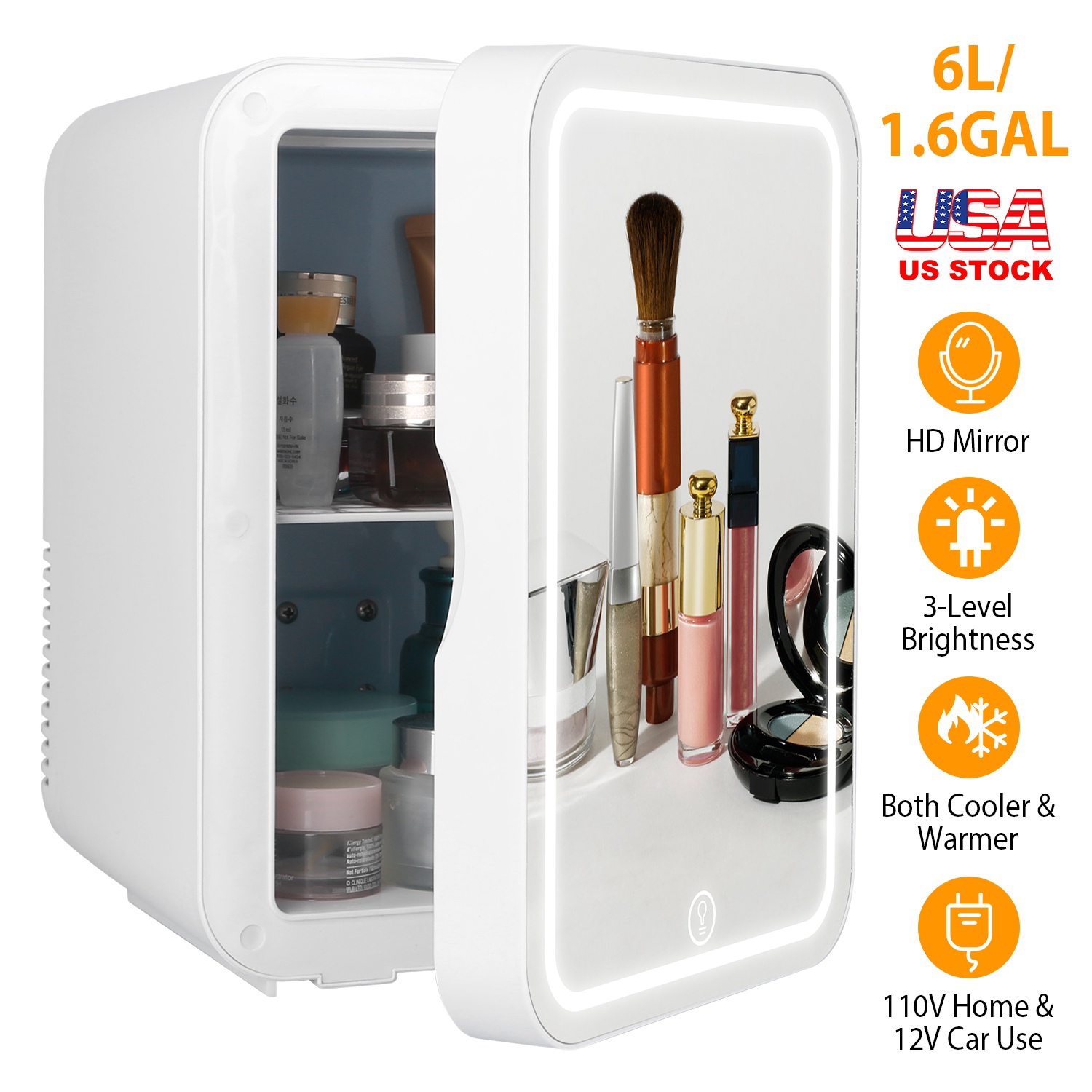 Home > 6L/1.6GAL Portable Beauty Fridge Mini Cosmetic Refrigerator AC/DC Skincare Makeup Cooler Warmer with Mirror Door 3-Brightness Light for Bedroom Travel