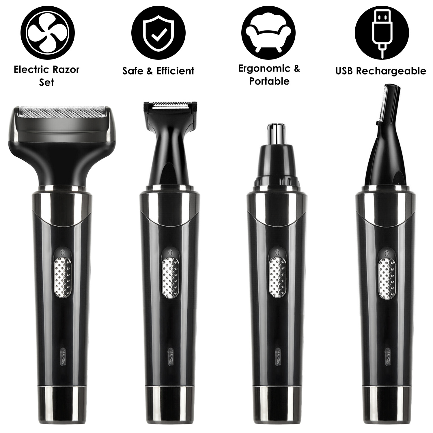 4 In 1 Rechargeable Razor Hair Beard Eyebrow Ear Nose Hairs Sideburn Trimmer Clipper Painless Electric Shaver Remover For Men Women