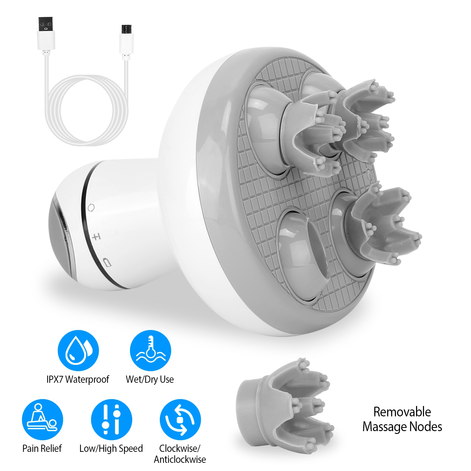 Electric Scalp Massager Handheld Head Kneading Scratcher IPX7 Waterproof 72 Massage Nodes Hair Growth Neck Shoulder Waist Body Massager