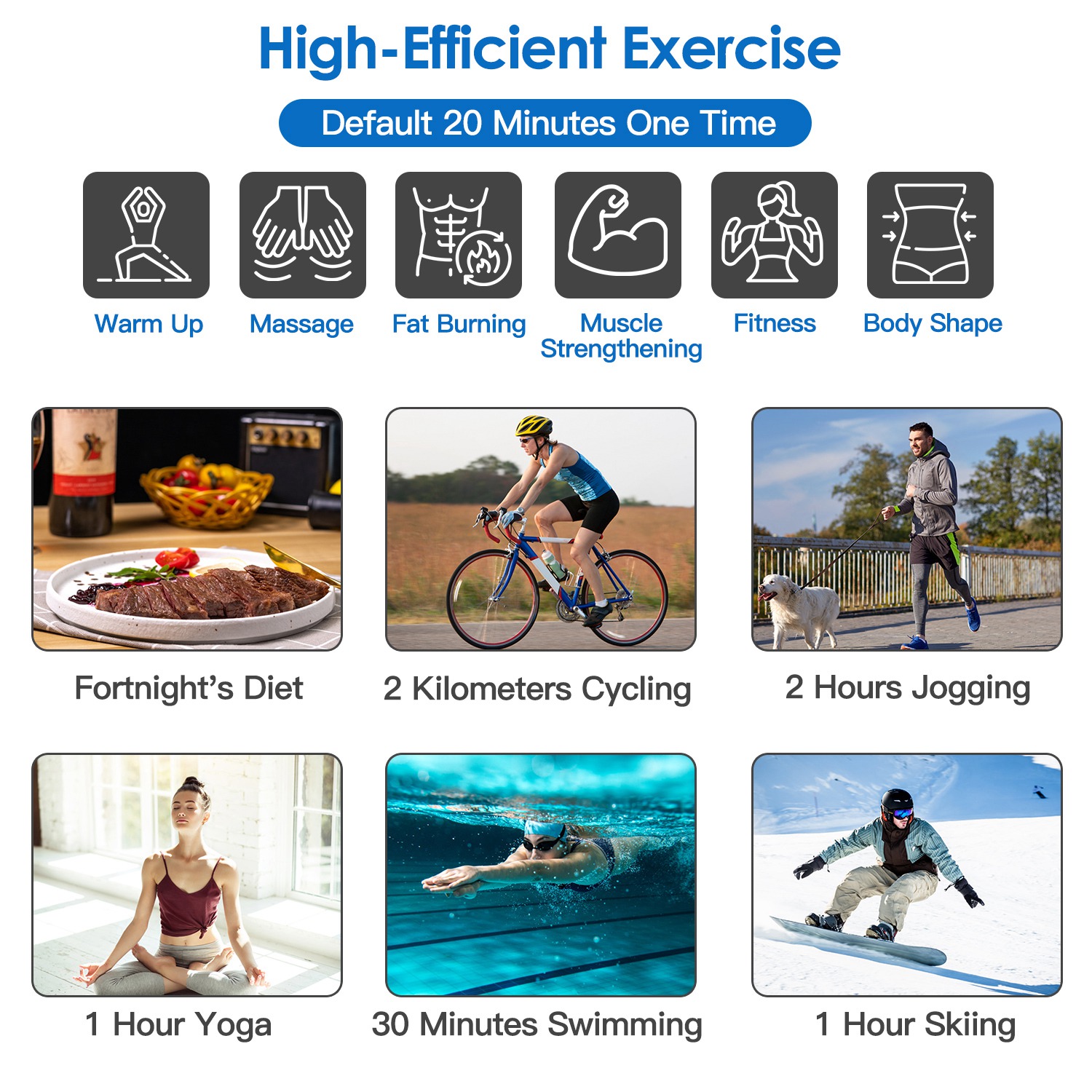 Mode: 10Modes: Mixed Exercise; Fat Warm Up; Muscle Warm-Up; Jogging Mode; Push Up; Sit Up; Barbell; Accelerated Fat Burning; Muscle Strengthening