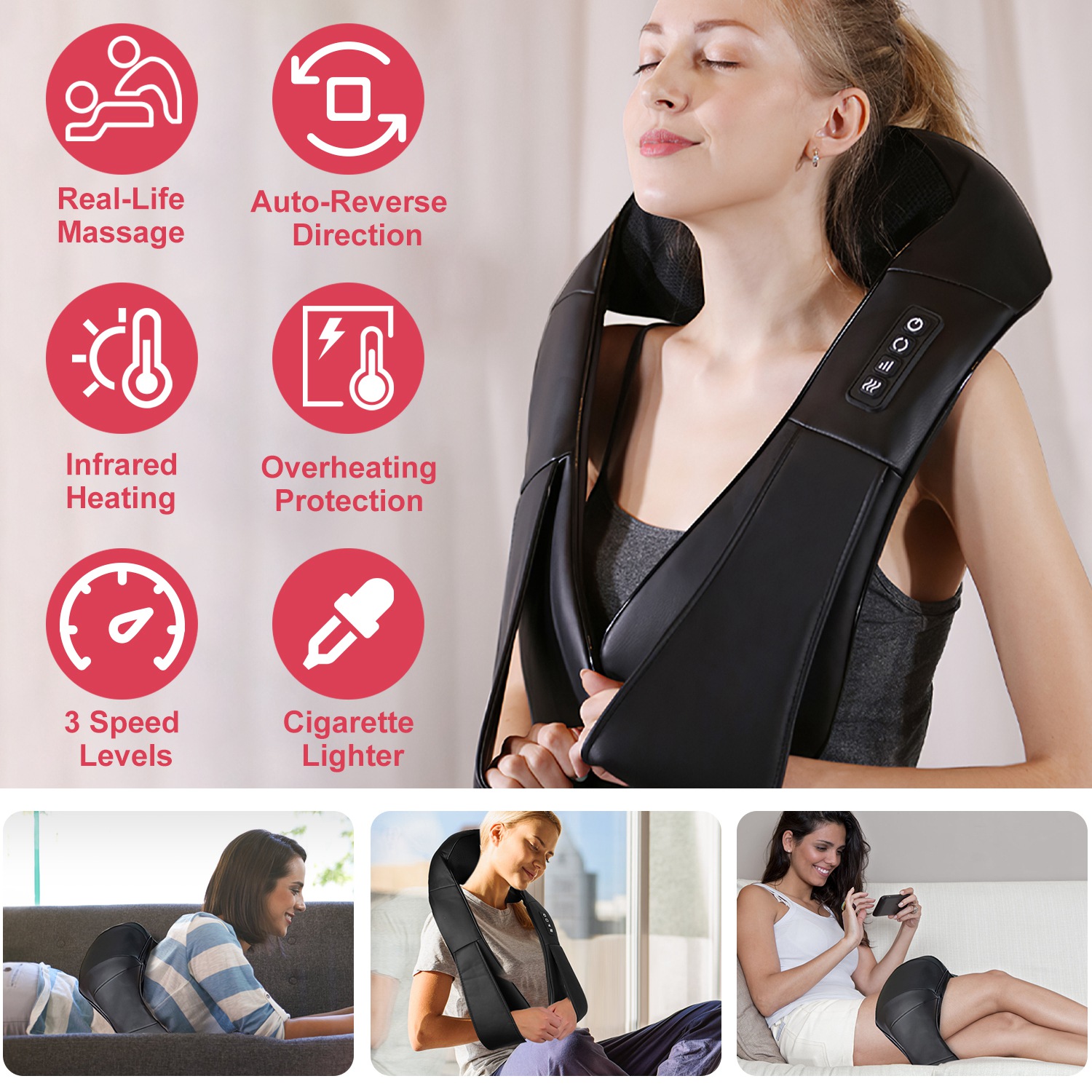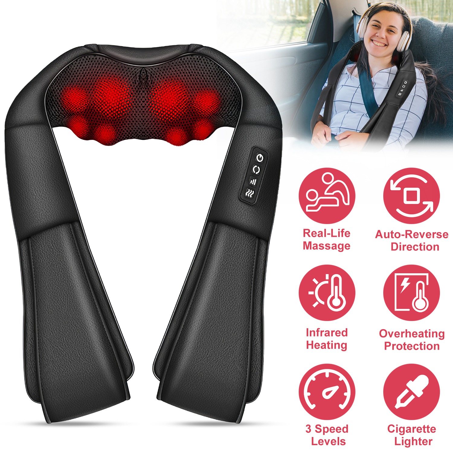 Home > Electric Neck And Back Massager with Infrared Light Heating 3 Intensity Levels Deep Kneading 3D Shiatsu Massage Pillow For Back Arms Thighs Pain Relie