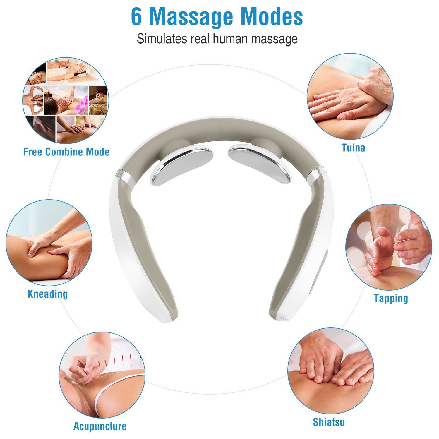 6 Modes: Acupuncture, Tuina, Tapping, Shiatsu, Kneading and Free combination modes w/