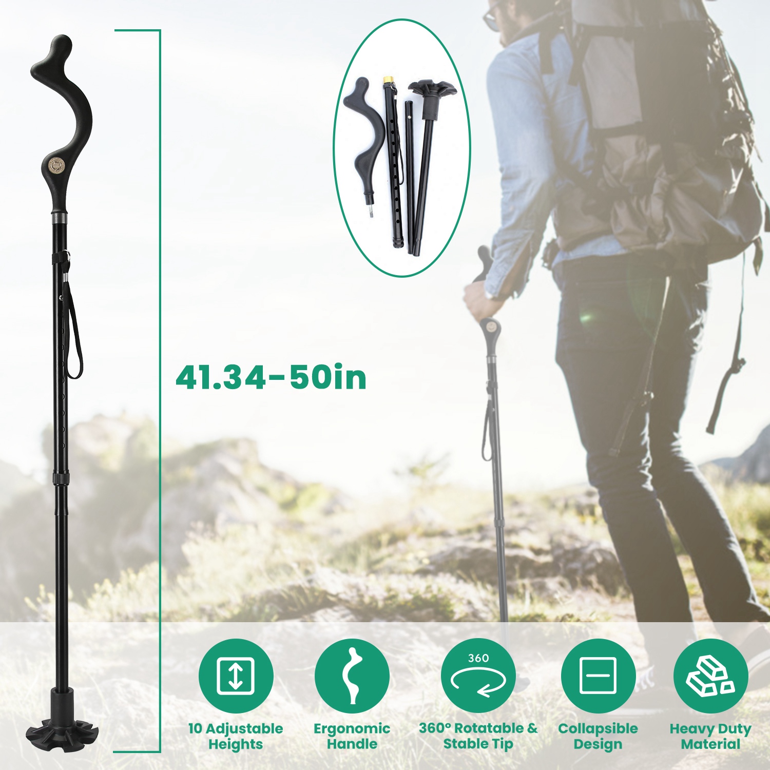 Home > Posture Walking Cane for Men Women Old People Collapsible Walking Cane Heavy Duty Walking Stick with 10 Adjustable Heights for Hiking