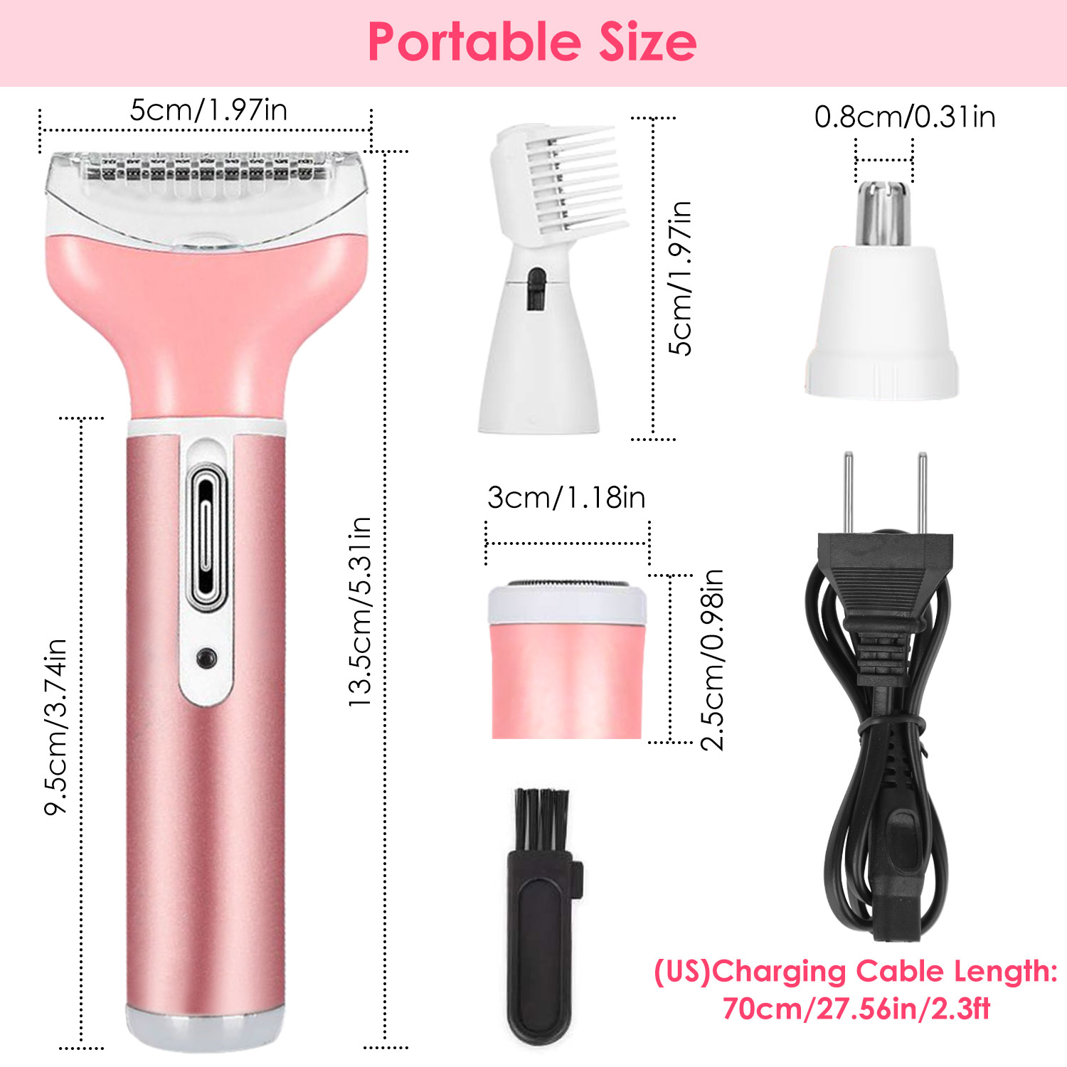 4 In 1 Women Electric Shaver Painless Rechargeable Hair Remover Eyebrow Nose Hair Cordless Trimmer Set Hair Exfoliation For Bikini Line Armpit Leg Gro