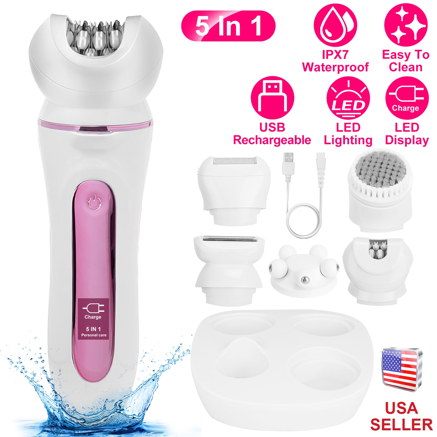 5 In 1 Electric Body Epilator Rechargeable Women\'s Grooming Kit Epilator Shaver Facial Brush Callus Remover 5-Point Massager with LED Light LED Displ