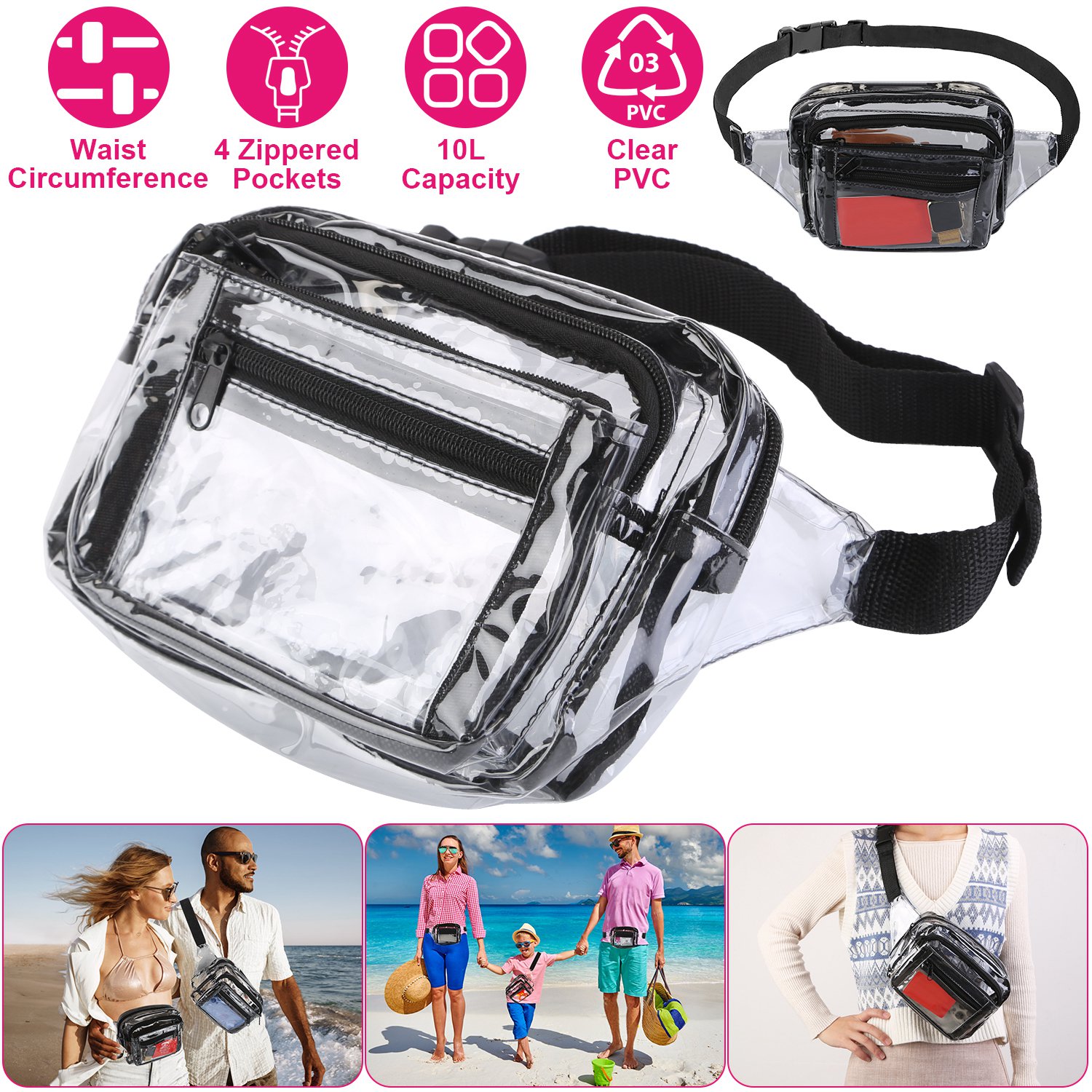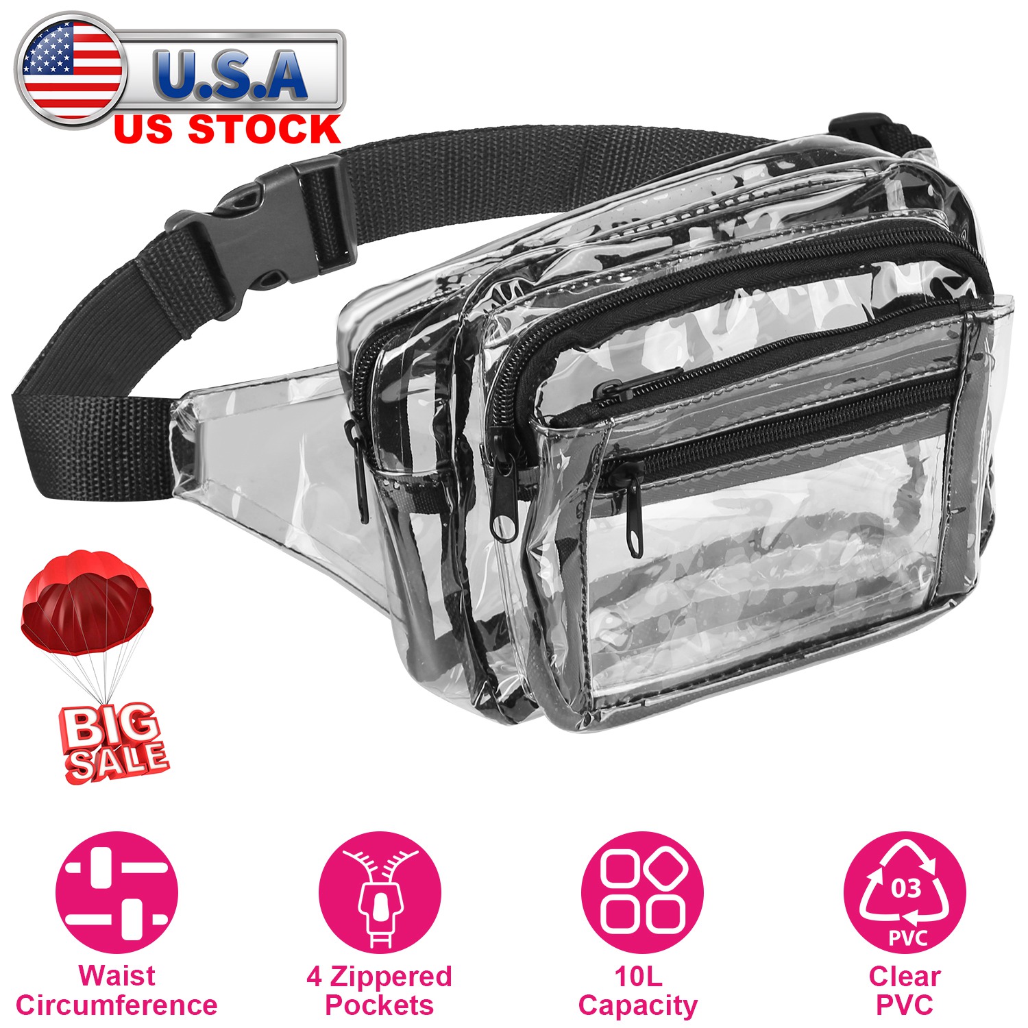 Home > Clear Fanny Pack Unisex Transparent Waist Pouch Belt Bag Clear Purse Chest Bag for Outdoor Sport Travel Beach Concerts Travel 23.42in-32.67in Waist Ci