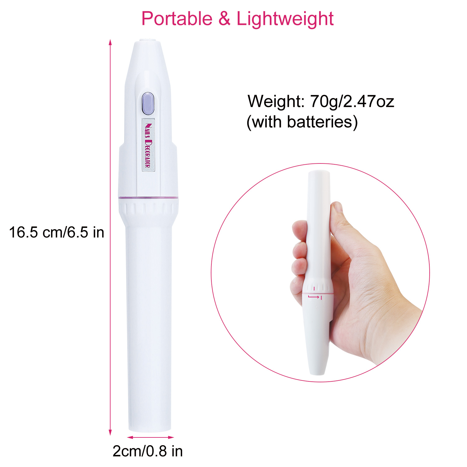Drill machine weight: 40.5g/0.089lbs(without batteries)